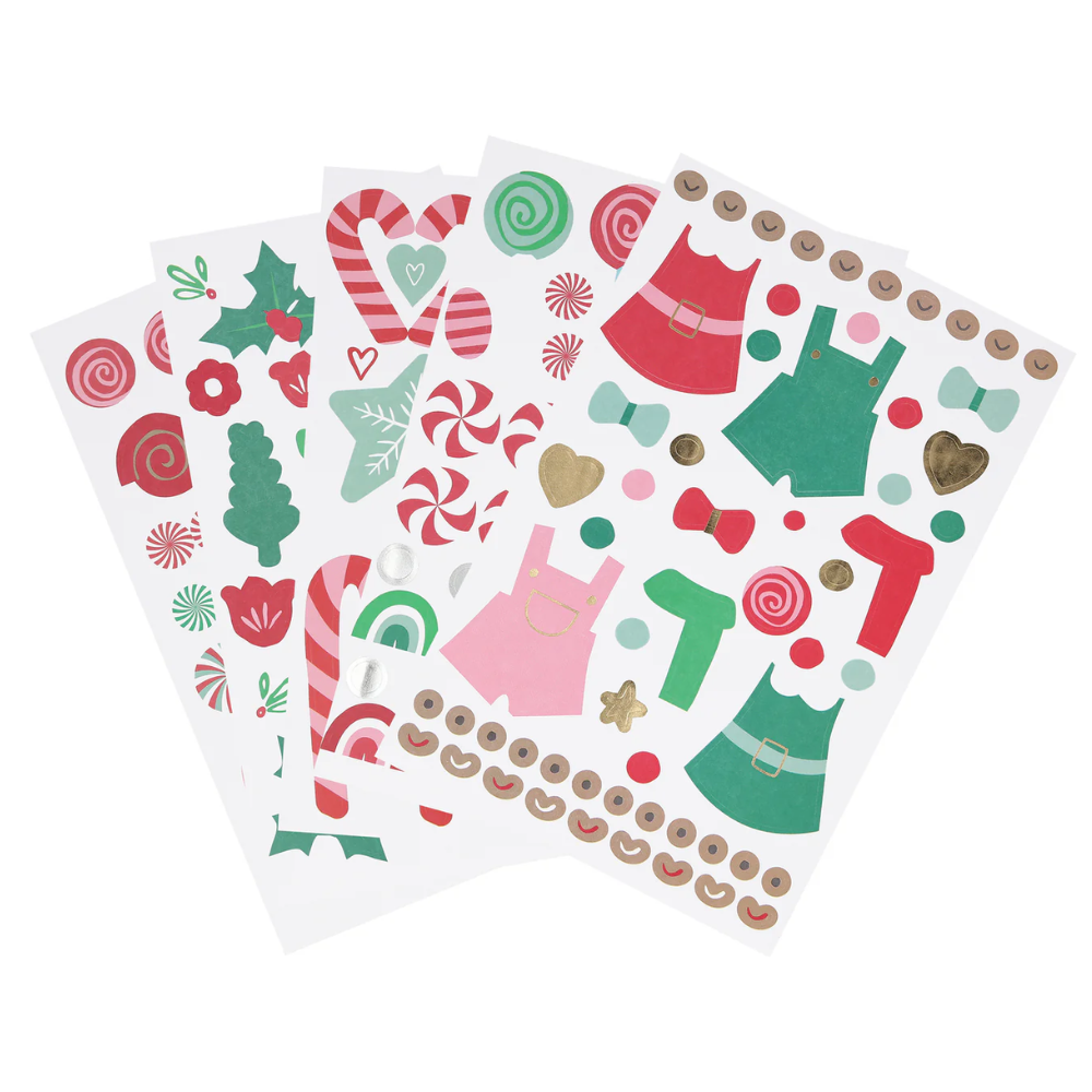 - Also included in the envelopes are yarn pompoms, a Merry Christmas silver star and 11 sheets of assorted stickers to decorate the scene with
