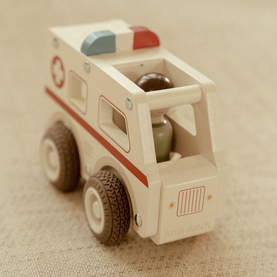 Siren on—it’s rescue time! This sturdy wooden ambulance is always ready to help, with smooth rubber wheels for speedy hospital runs. The set includes a caring wooden nurse, plus room inside for a patient, so little ones can act out real-life emergencies. Perfect for imaginative play, this ambulance inspires storytelling, problem-solving, and plenty of heroics. Who will you help feel better today?