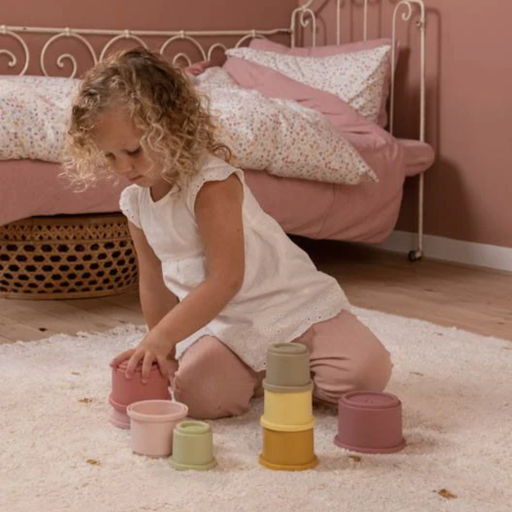 How tall can your tower reach? This delightful set of 8 pink and yellow Little Dutch stacking cups encourages little ones to build, balance and discover, one cup at a time. Featuring numbers on the top, it also helps support early number recognition while developing fine motor skills and providing hours of happy play.