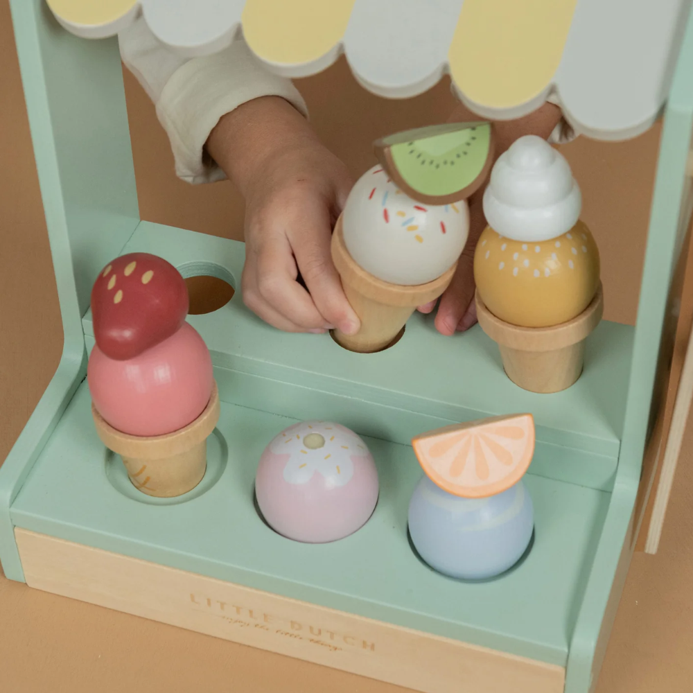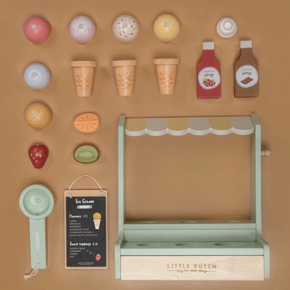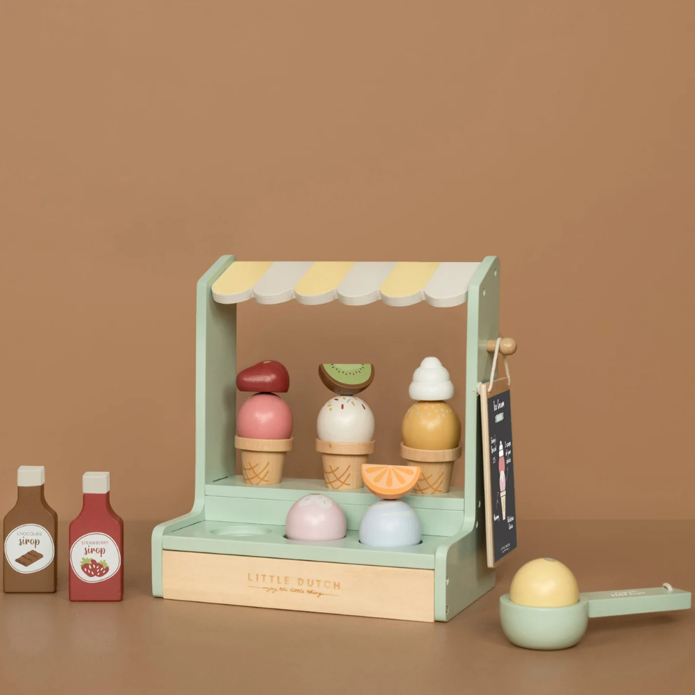 What’s your favourite flavour vanilla, strawberry, or maybe all six? This charming wooden Ice cream shop from Little Dutch, complete with a sunny yellow and white awning, is ready for endless make-believe treats. Your little one can scoop, serve, and top three cones with the most colourful flavours in town, using the included selection of fun toppings and a price list for extra pretend-play magic. Beautifully crafted and full of thoughtful details, this wooden ice cream shop invites hours of creative, open-ended play perfect for little shopkeepers with big imaginations.