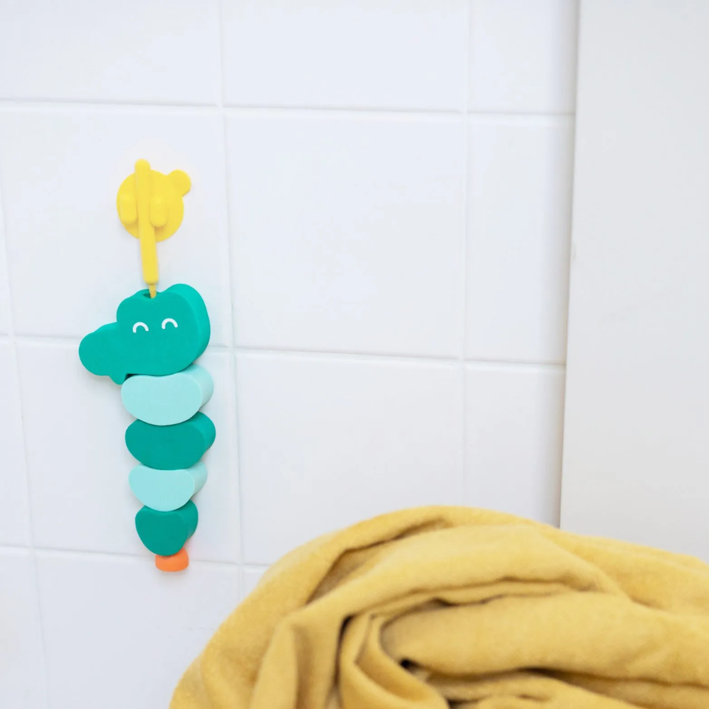 Have fun at bath time with Croco - a threading toy from Quut. This is a great toy that can grow with your child. From 10 months old, your little one will be able to play with the large soft foam blocks that float on the water and stick to the side of the side of the bath tub. From 18 months, they will be able to start lacing the beads together using the needle stimulating their cognitive ability and enhance his hand-eye coordination. Croco's parts can float on the water or stick easily to the side of the bath or once whole again, can be hung onto the bath via the suction cup.