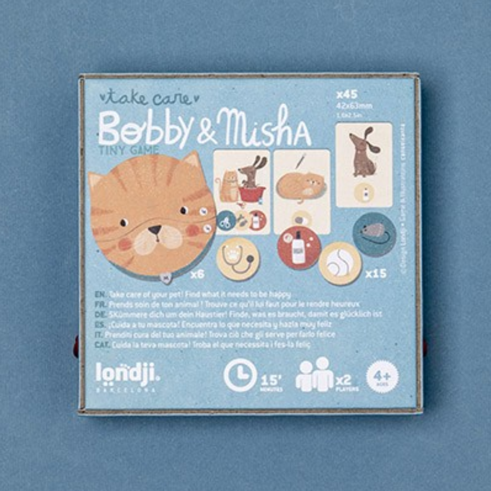Take care of playful pets with Bobby & Misha Memory Game, a fun matching game where children help a mischievous dog and cat feel happy again. Flip the cards, find the matching pieces and complete the actions to look after your pet — every correct match brings them closer to a big, happy smile.