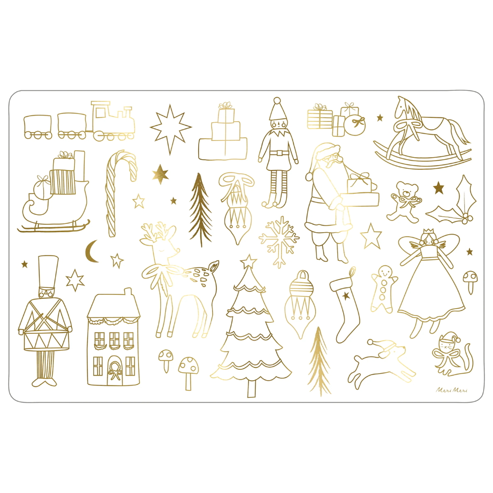 Regular price £14.95Bring extra festive fun to the table with these gold-foil illustrated Christmas placemats from Meri Meri. With plenty of space to colour in, they double as a creative craft activity and a sparkling decoration to keep little ones entertained before, during, and after Christmas dinner and create some calm time during the busy Christmas season.