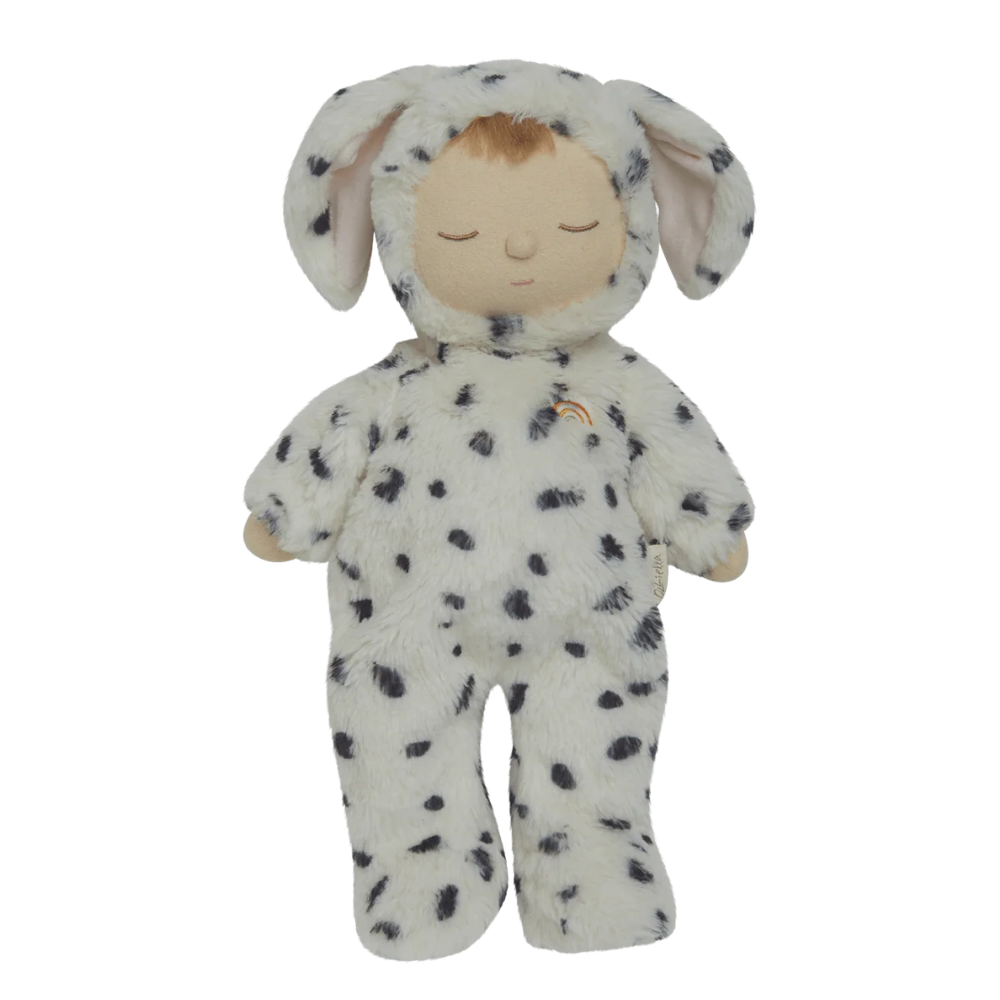 Woof woof! Meet Dog Domingo from the Cozy Dinkums collection by Olli Ella, a sweet Dalmatian-inspired pup with soft white fur, playful black spots and irresistibly fluffy floppy ears, always ready for cuddles and adventures.