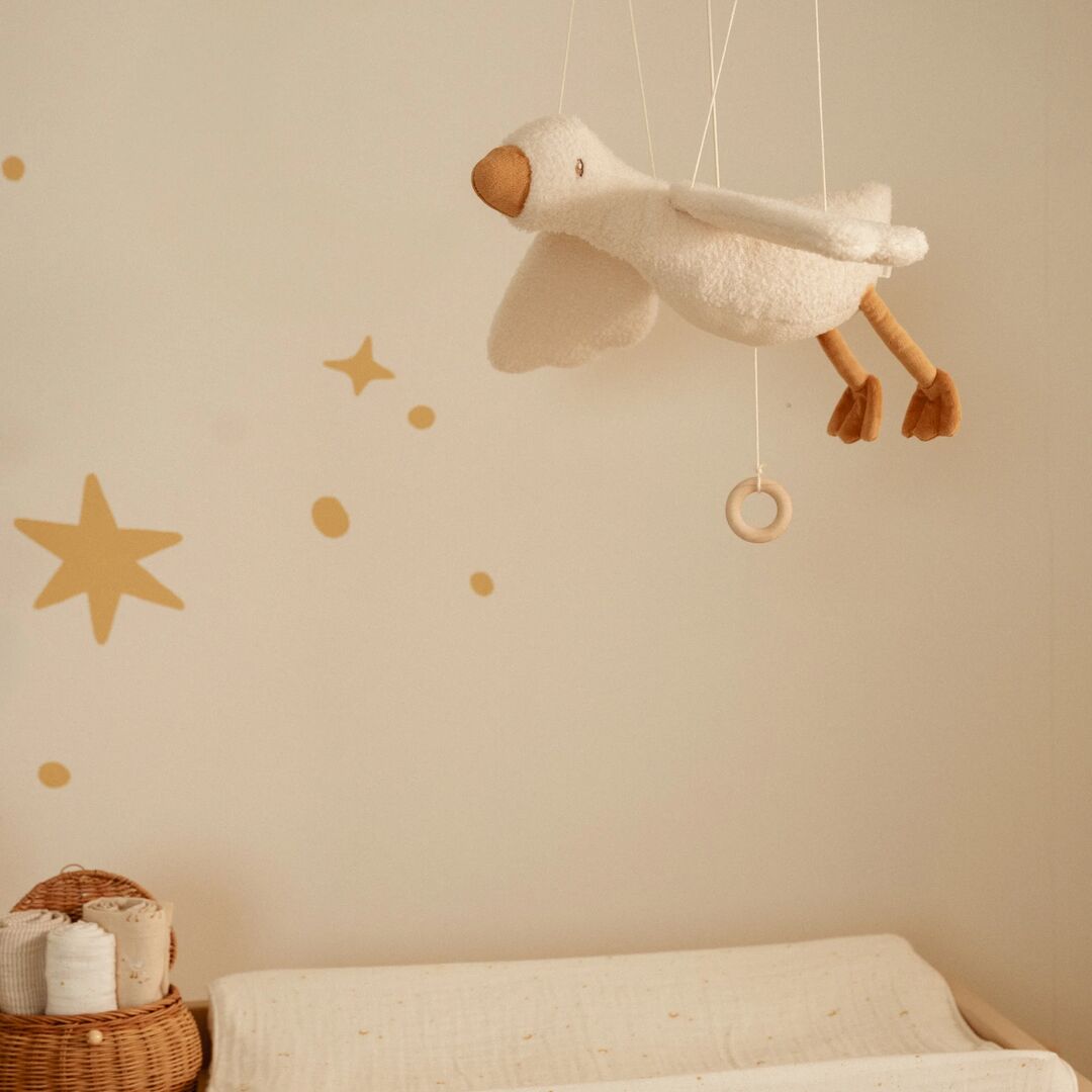 Add a touch of charm to your nursery with the Little Dutch Flying Little Goose Decoration. This soft, fabric goose with outstretched wings seems to soar gracefully through the air, the perfect whimsical accent for a calm and cosy space.